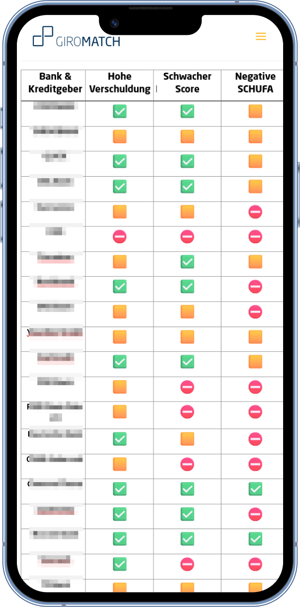 Viele Kreditvermittler arbeiten nur mit Banken zusammen, die hohe Provisionen zahlen. Als GIROMATCH.com-Member entscheidest du selbst – ohne Zwischenmann.